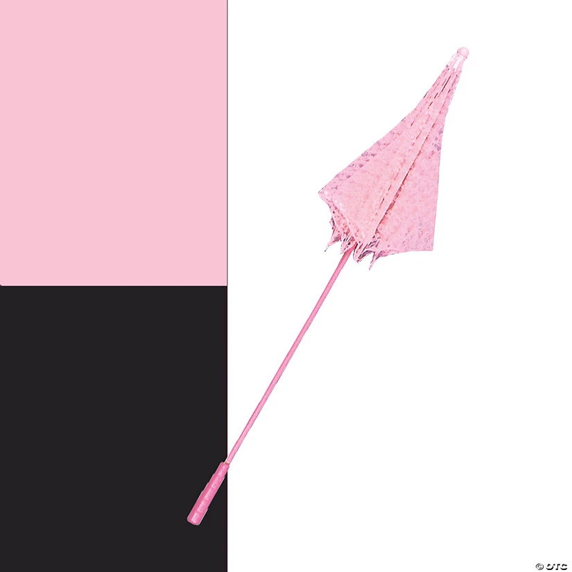 32 inch sheer lace parasol on a durable wire frame. 25 inches in diameter.
