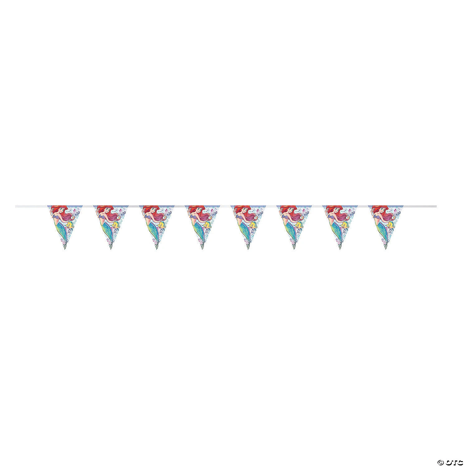 This The Little Mermaid Decorating Kit contains everything you need to turn your party into a mermaid oasis in one convenient package! With both table décor and hanging decorations printed with Ariel and Flounder, the set helps you create a Little Mermaid party theme. Combine these party decorations with Little Mermaid tableware to complete the look! Includes 2 mini honeycomb centerpieces, 4 hanging swirls and one 8-ft. pennant banner. Paper. (7 pcs. per unit) © Disney